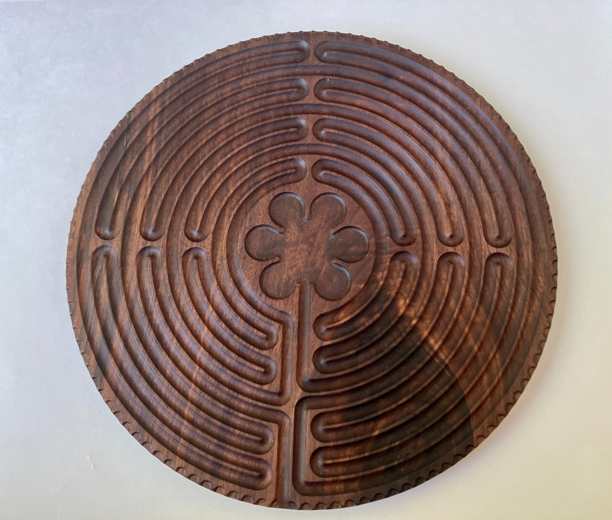 Extra Large 11-circuit Chartres-style Finger Labyrinth, Walnut Wood, 12" diameter