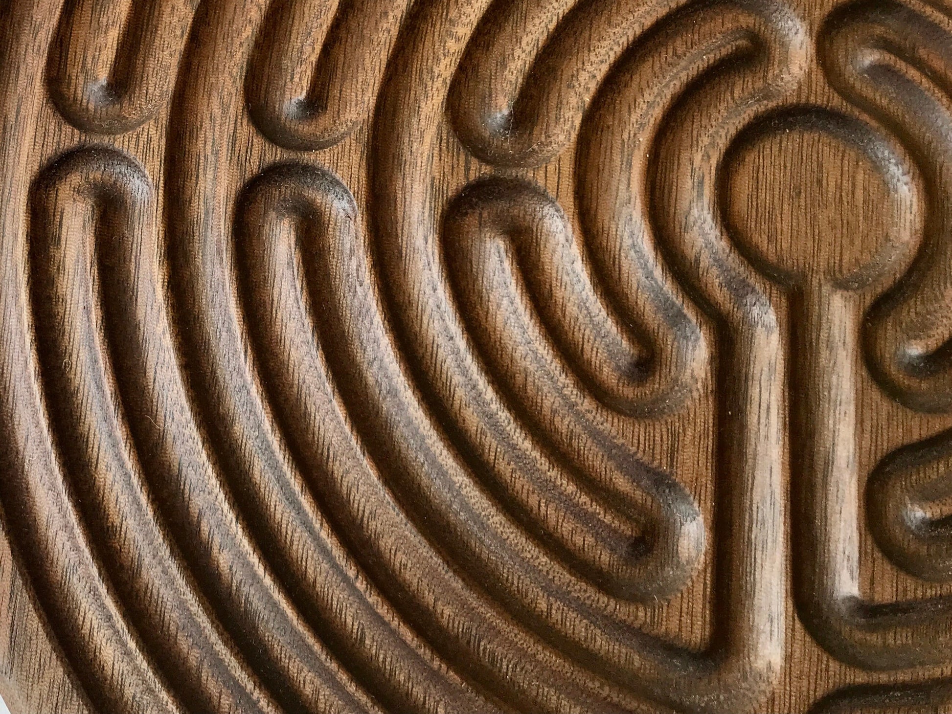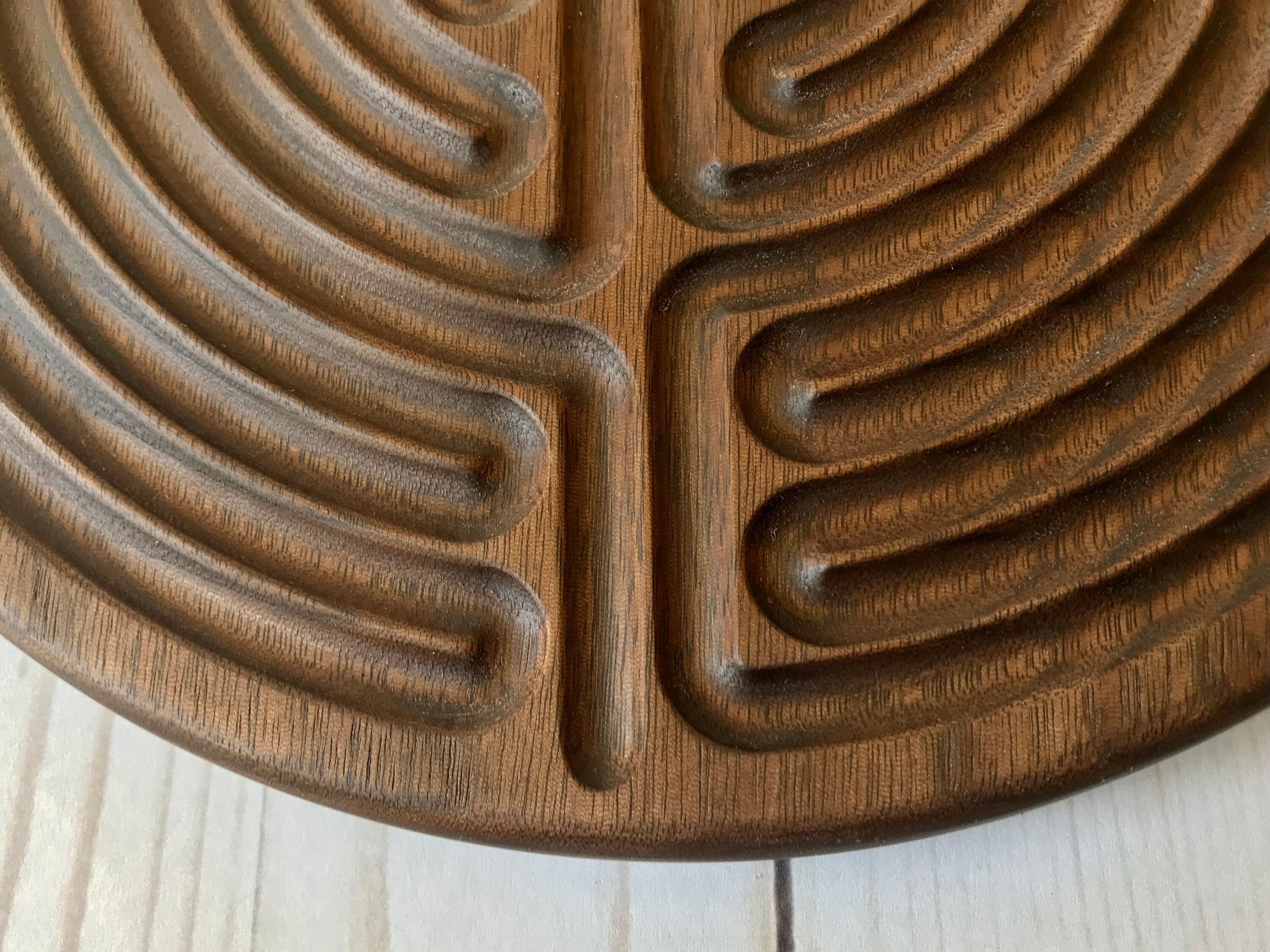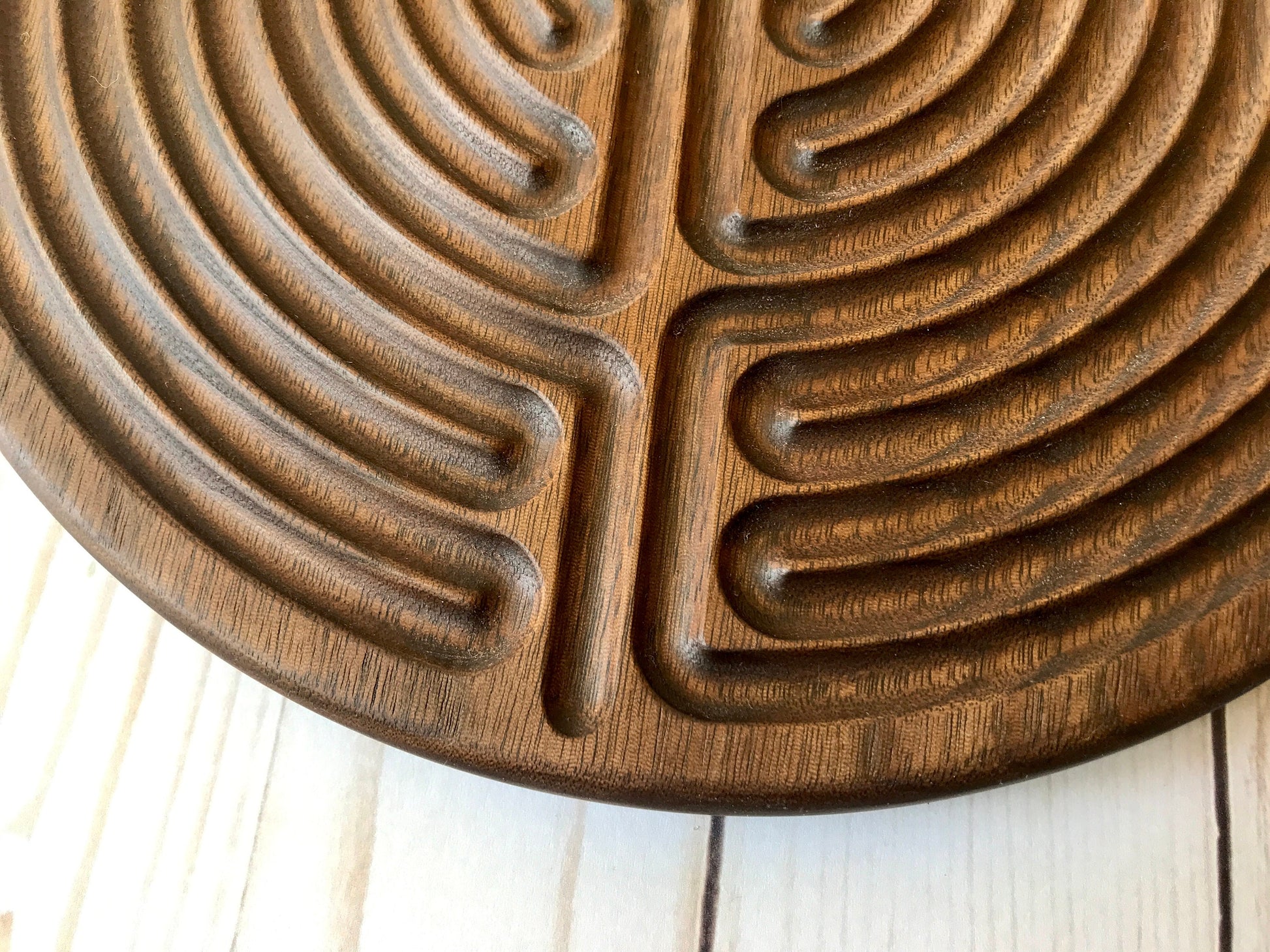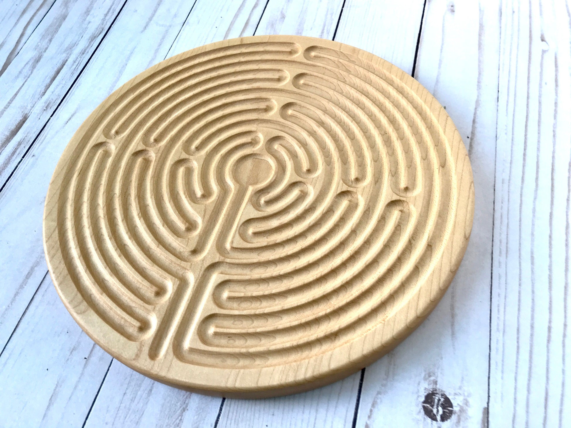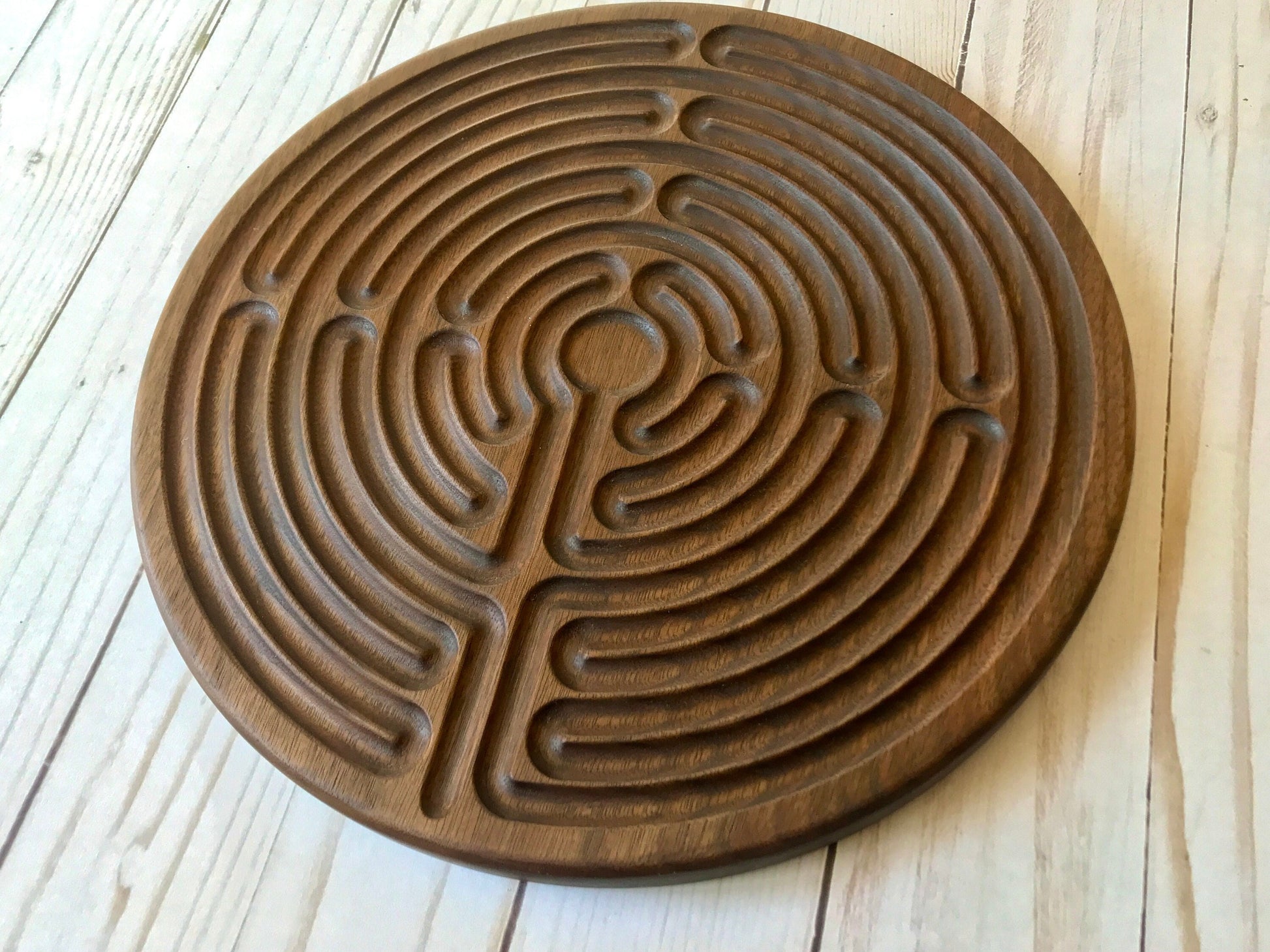Large 11-circuit Chartres-style Finger Labyrinth, Maple/Walnut Wood, 10" diameter