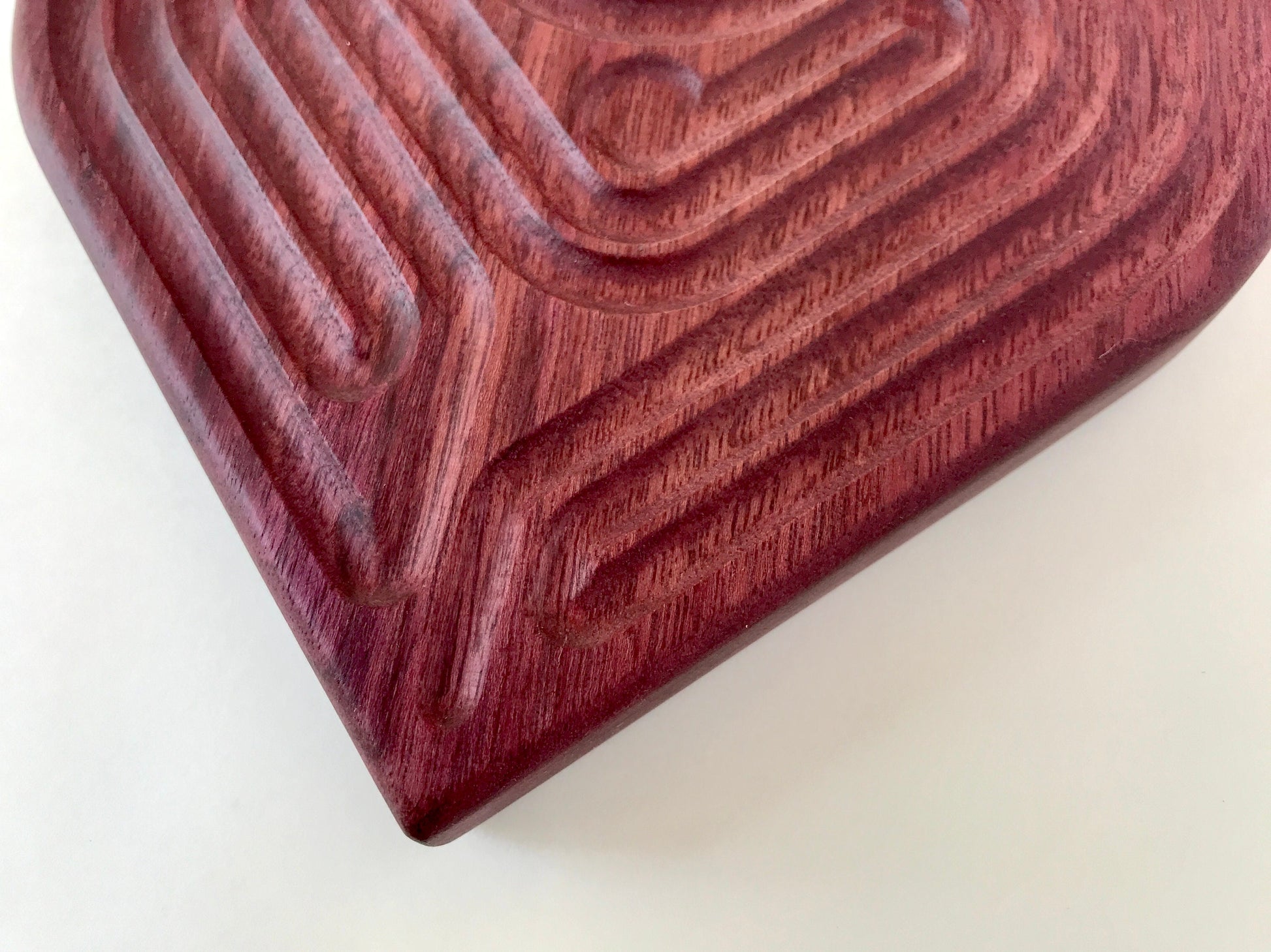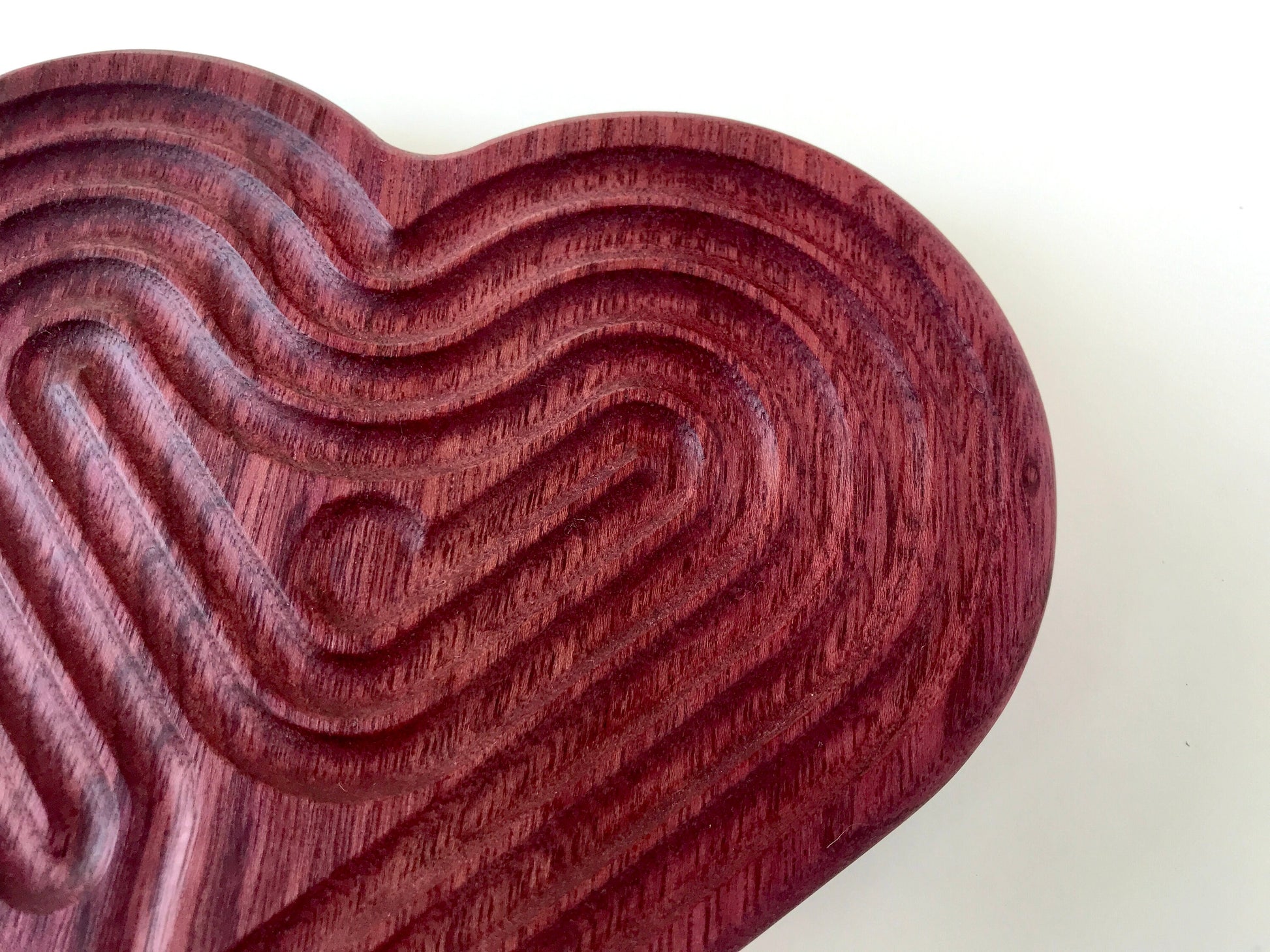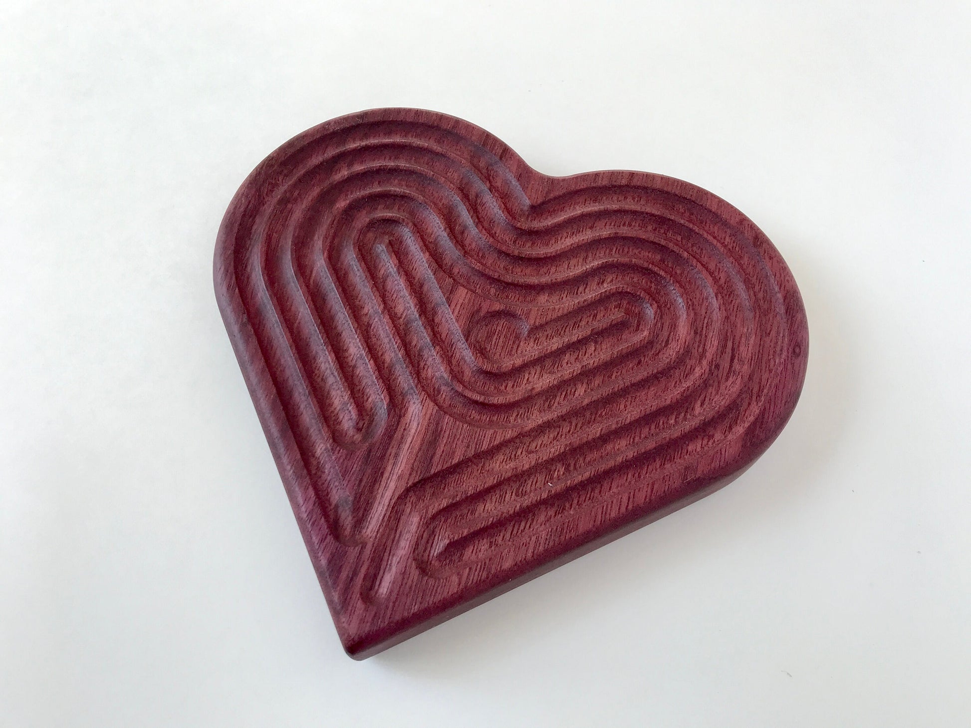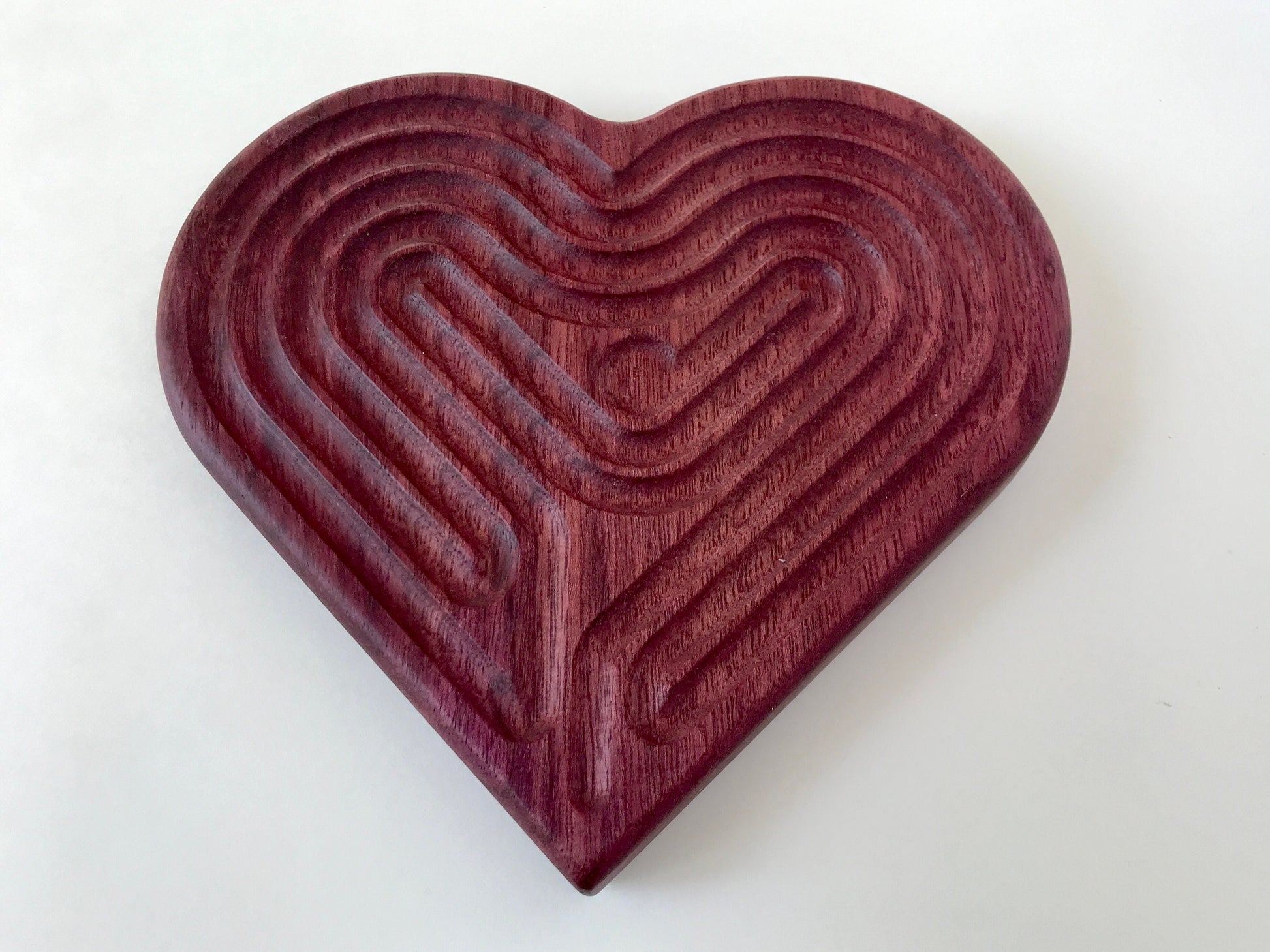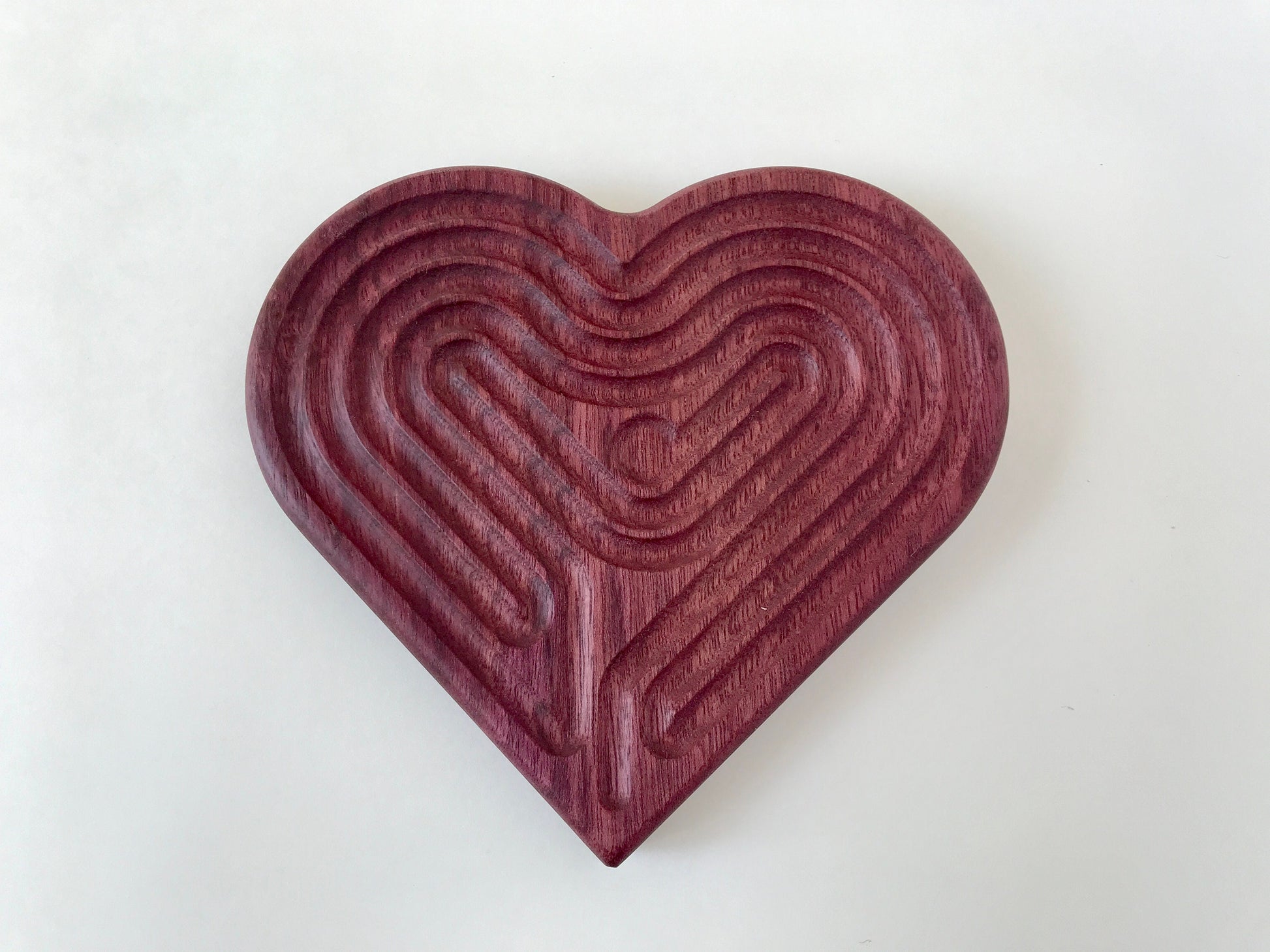 Medium Heart-shaped Finger Labyrinth, Purpleheart Wood, 6.5"