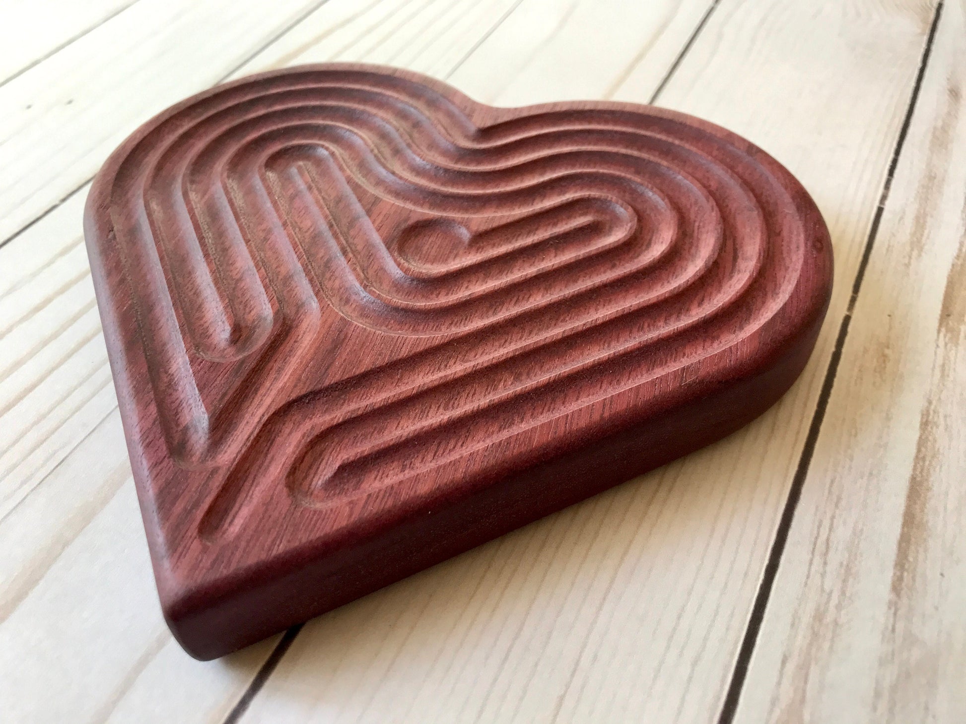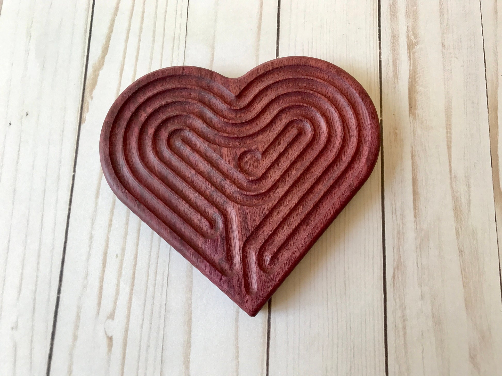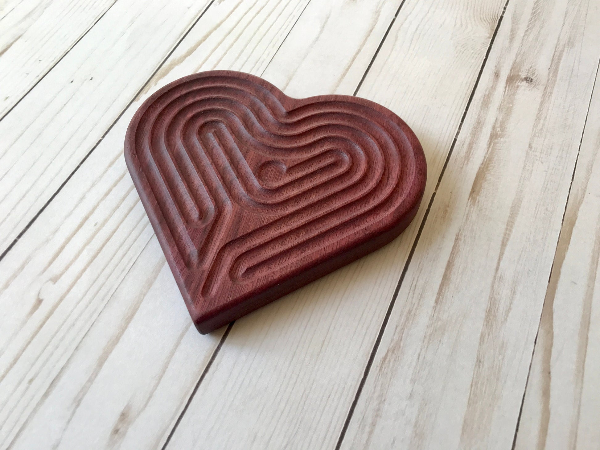 Are you looking for a thoughtful gift for a loved one? Are you tired of throw-away gifts? This heart-shaped wooden finger labyrinth makes a meaningful, unique, and lasting gift!