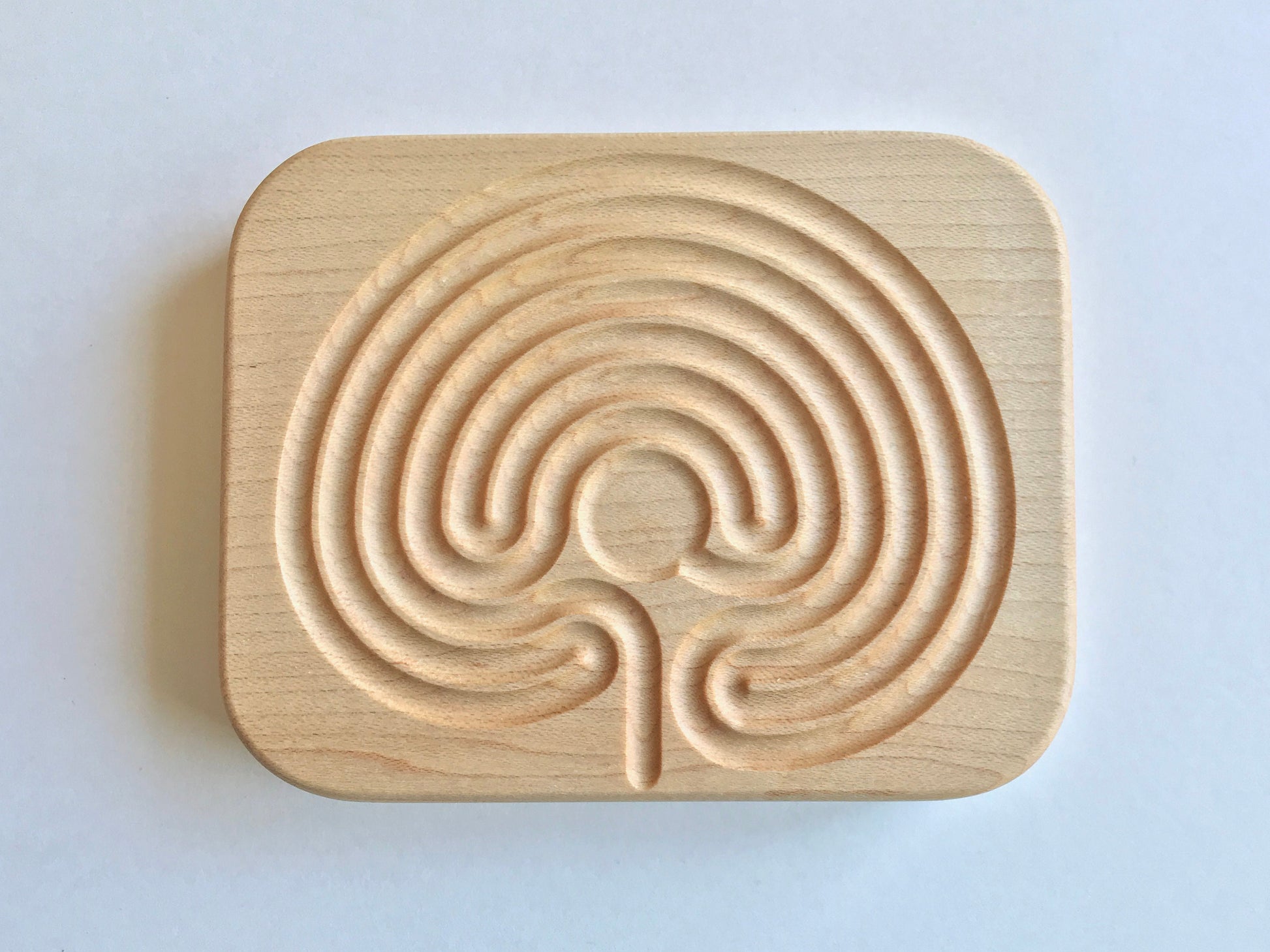 Our labyrinth is handmade of maple wood and and is meticulously finished with beeswax and jojoba oil, its groves are smooth and a pleasure to trace. Curved edges of the labyrinth make it comfortable to hold. The small size of this labyrinth makes it perfect for carrying with you, keeping on a desk or a peace table, and if space is limited, storing it. And it comes with a storage bag, so it is easy to put away or take with you!
