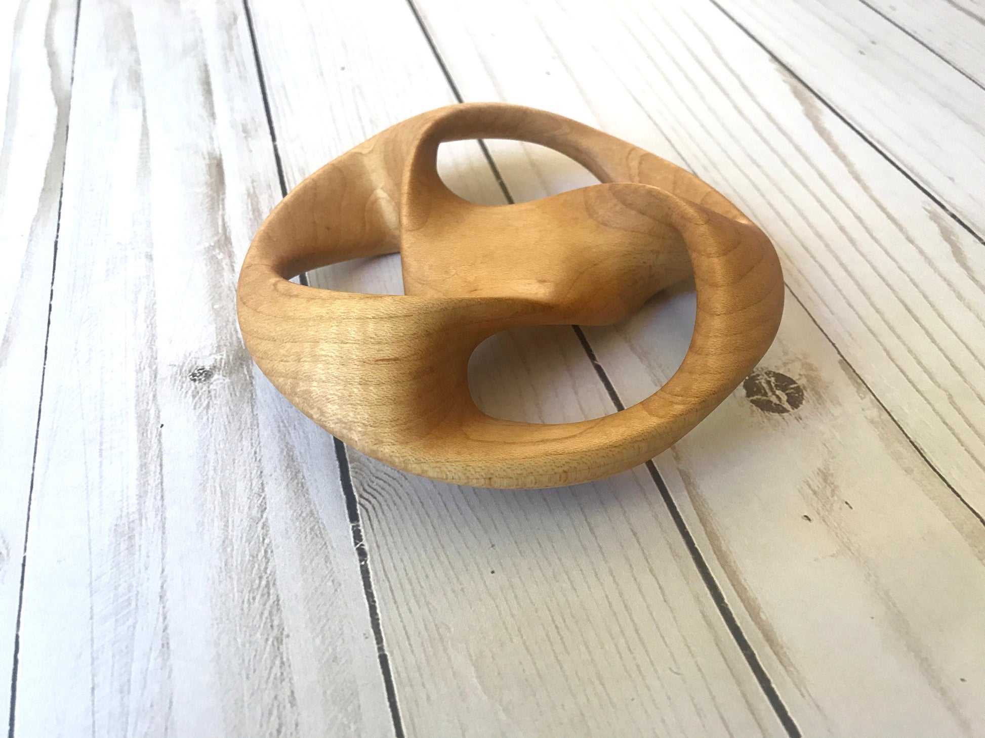Triquetra Mobius Strip-like Wooden Sculpture, Maple Wood, 5"
